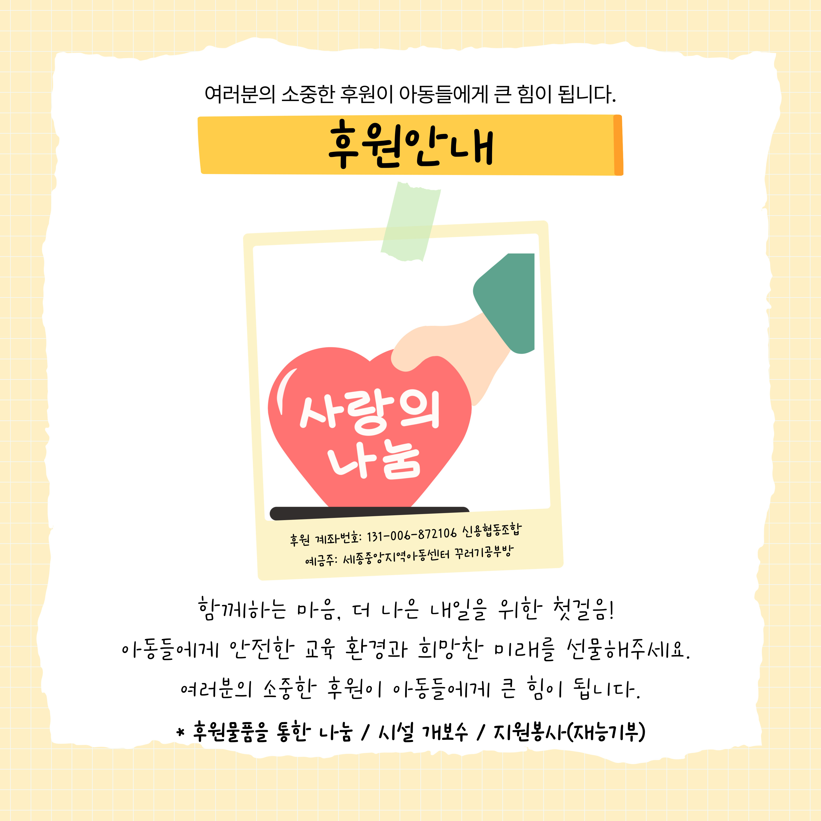 자세한 내용은 카드뉴스와 세종중앙지역아동센터 홈페이지를 참고해주세요! 감사합니다 !!