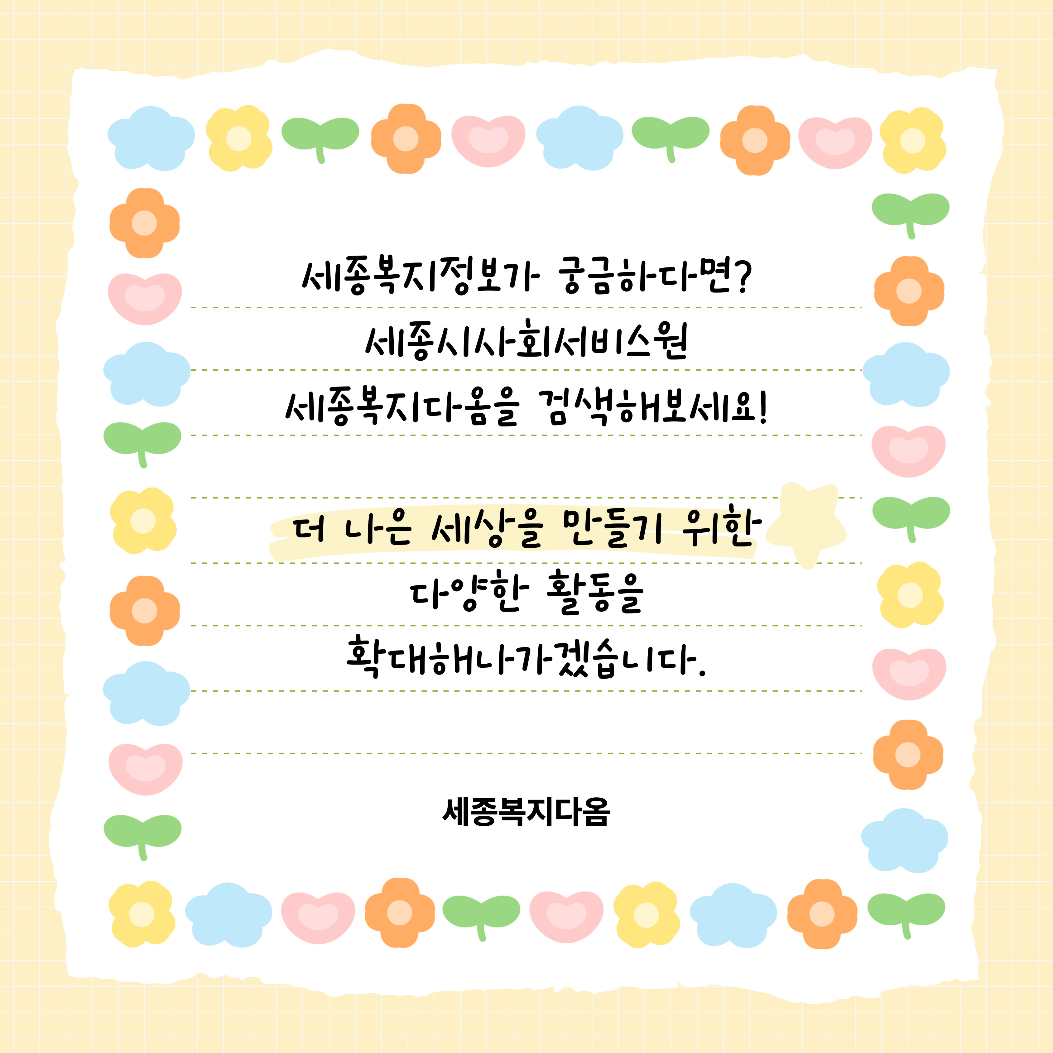 세종시사회서비스원은 세종시의 복지정보와 자원을 쉽고 편리하게 이용할 수 있도록
