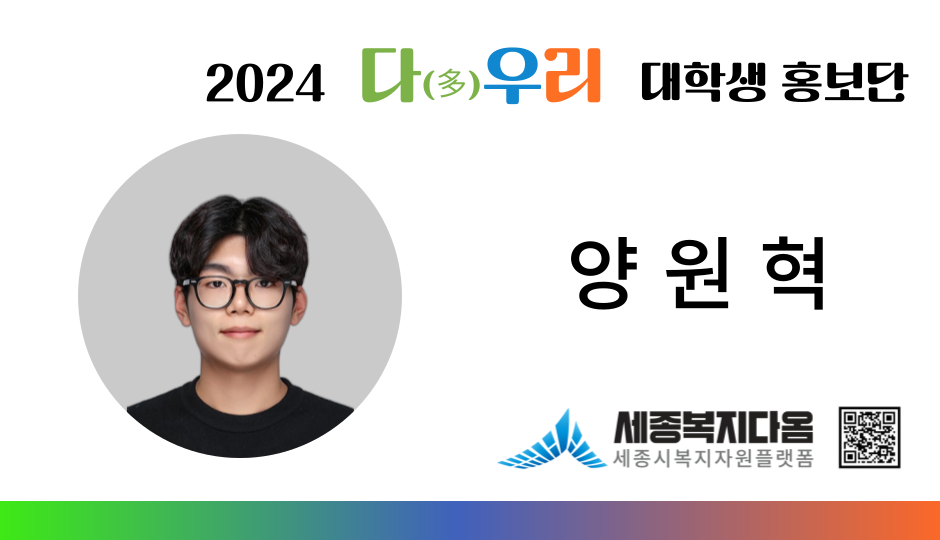 세종시사회서비스원 세종복지다옴 다우리 서포터즈 양원혁입니다.